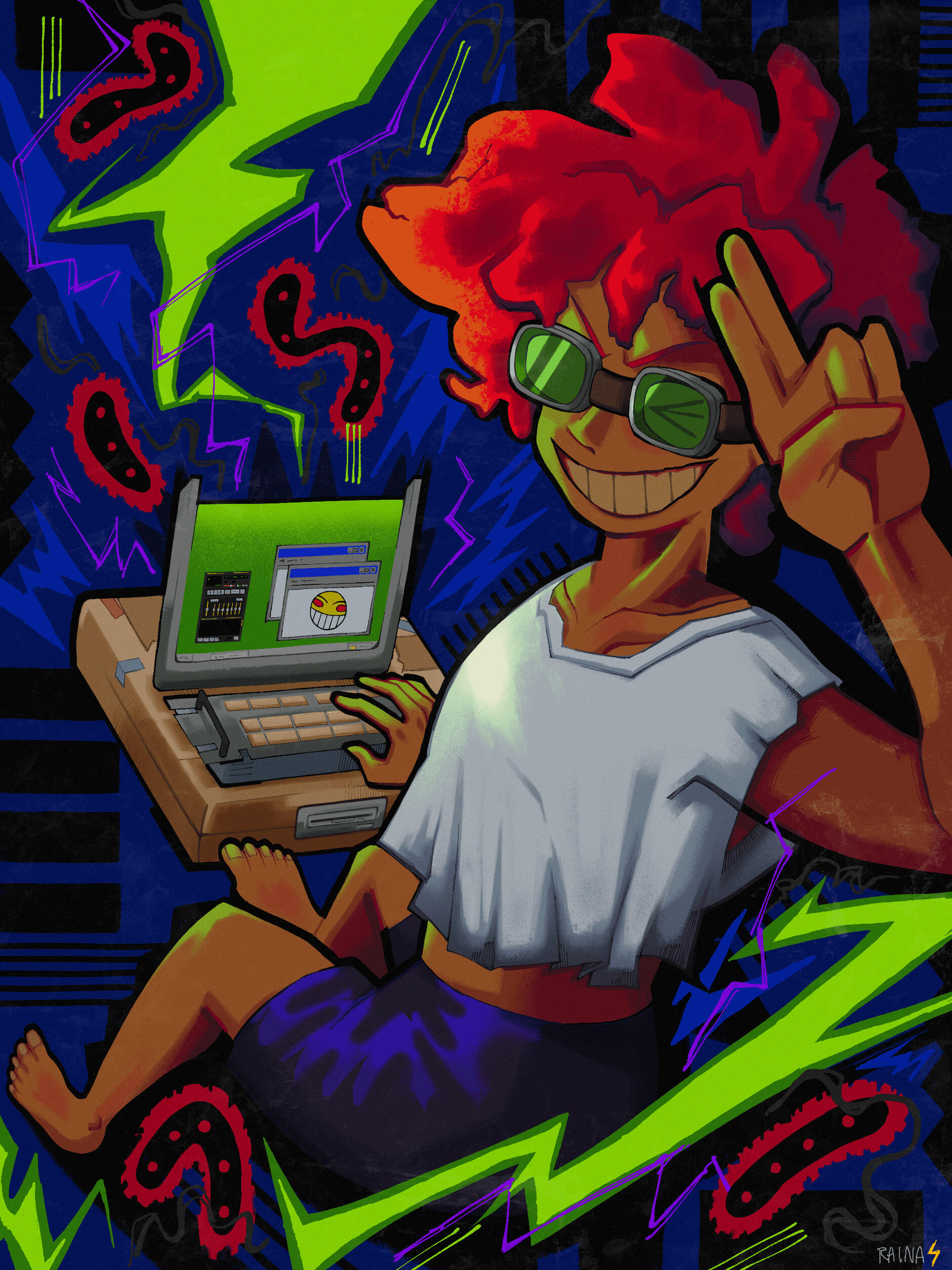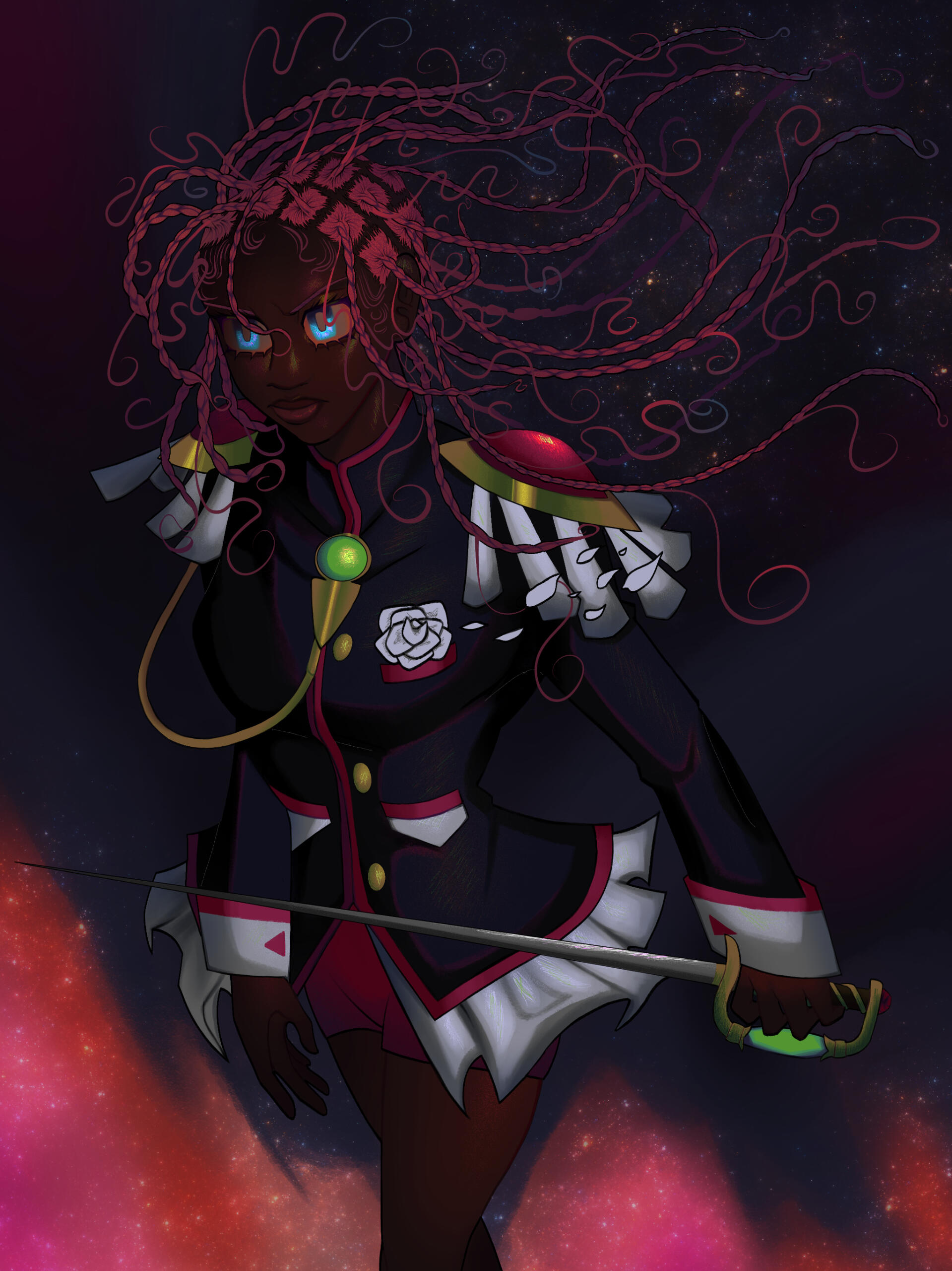 Raina Bouyer is a Black American nonbinary hobbyist artist who has been illustrating and sharing their work online since 2017. With a Bachelor's Degree in Studio Art from Georgia State University, Raina creates original character concept art and design that tests the boundaries and limitless nature of color. As a fan artist, they explore reinterpreting beloved characters—often of which they challenge how to creatively imagine black culture and its aesthetics on their iconic traits.